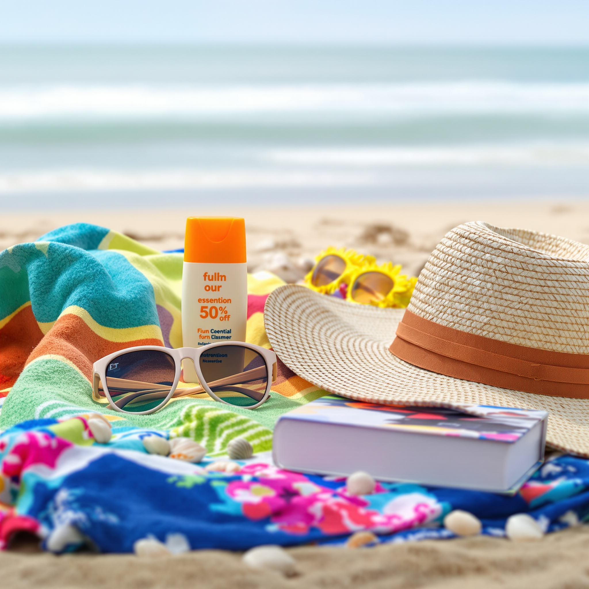 - 자외선 차단제, 수영복, 비치타월, 아쿠아 슈즈