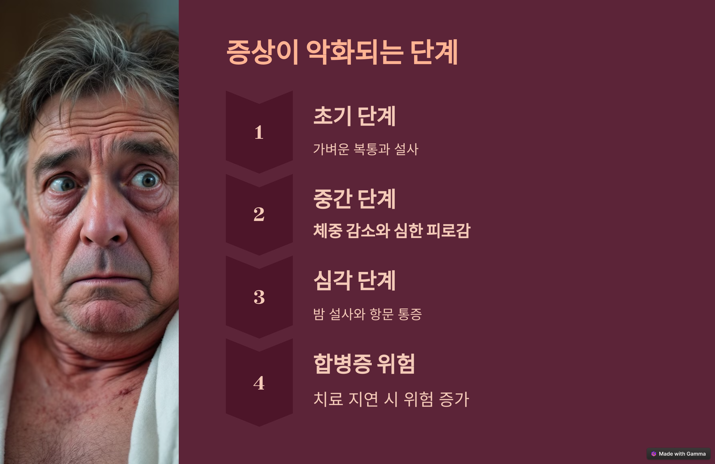체중이 급격히 줄거나, 피로감이 심해지면 염증이 더 깊어졌다는 의미입니다.