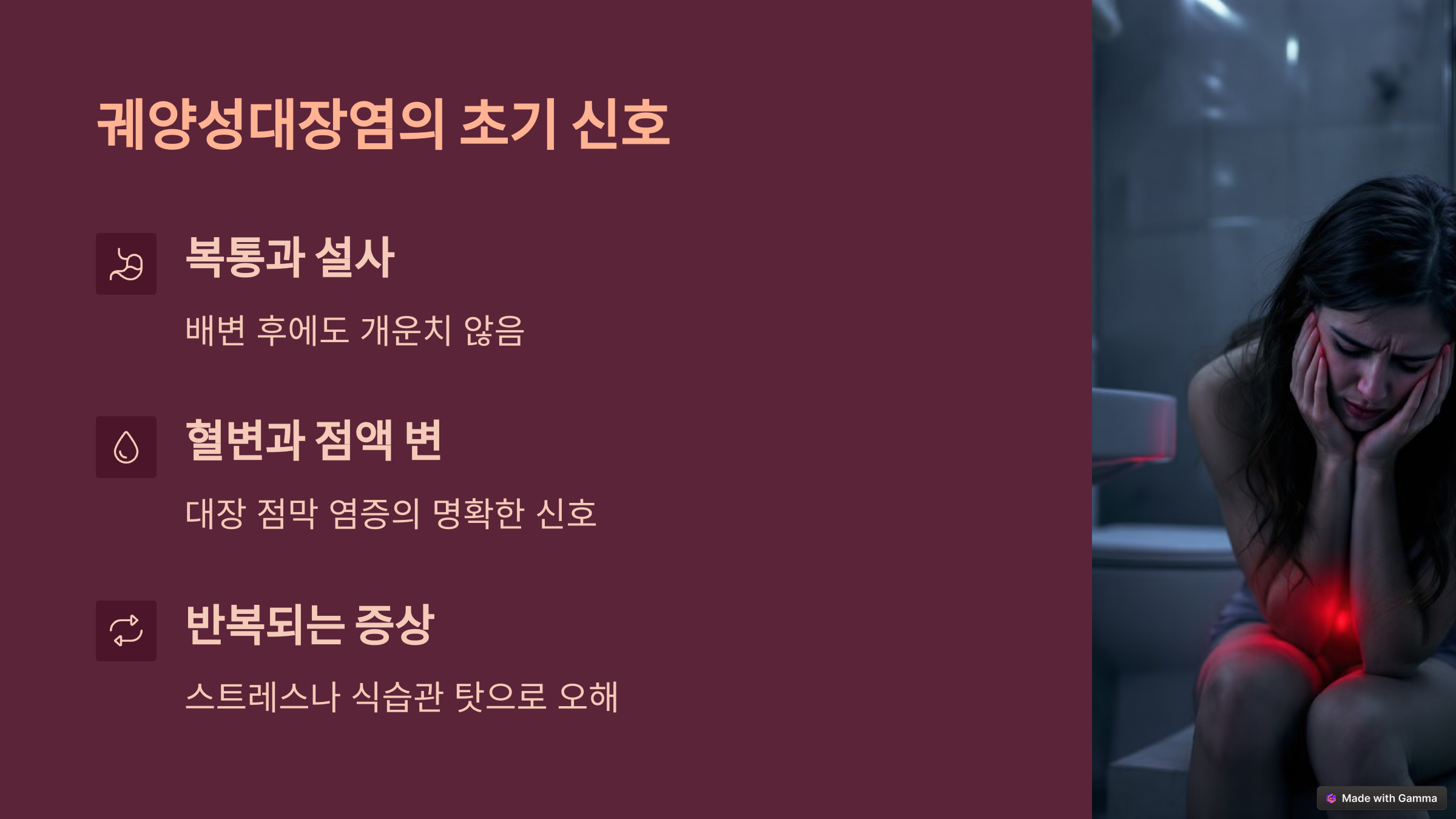 궤양성대장염 확진 2년 차 환자의 경험을 바탕으로 초기 증상부터 병원에 꼭 가야 할 타이밍까지 정리했습니다.