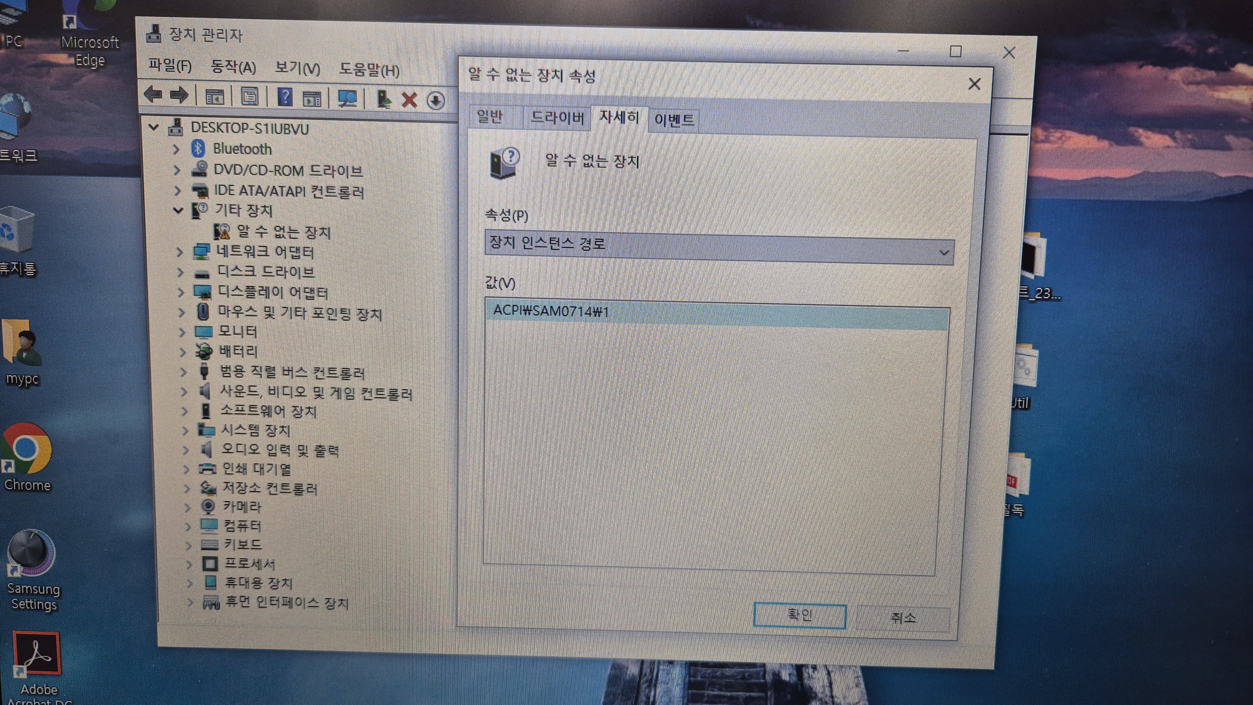 삼성 노트북 NT300E5V 모델(ACP\SAM0714\1) 장치 관리자 "알 수 없는 장치" 해결방법