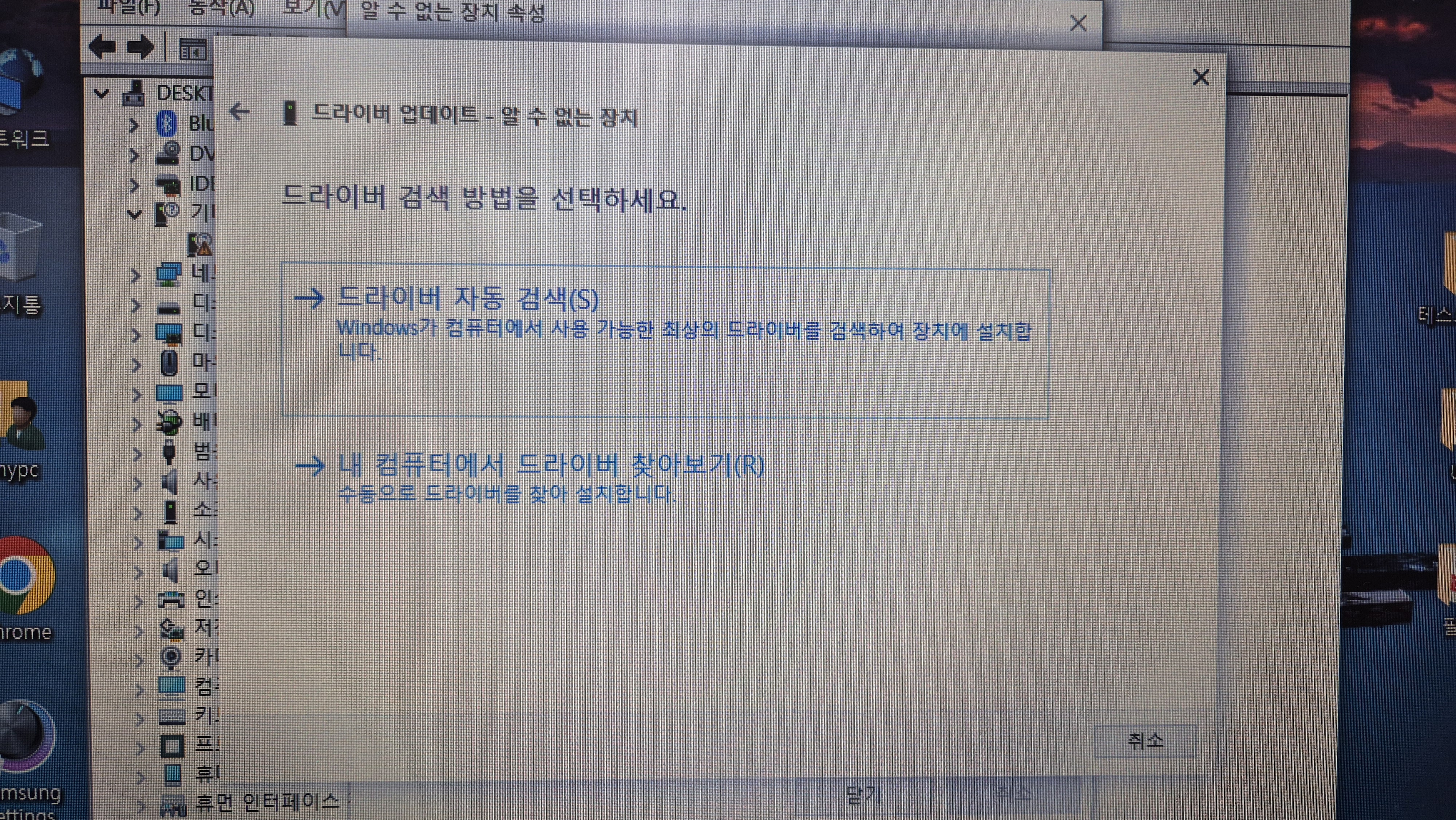 대부분의 드라이버는 Windows 업데이트를 통해 자동 설치되지만, 간혹 위와 같이