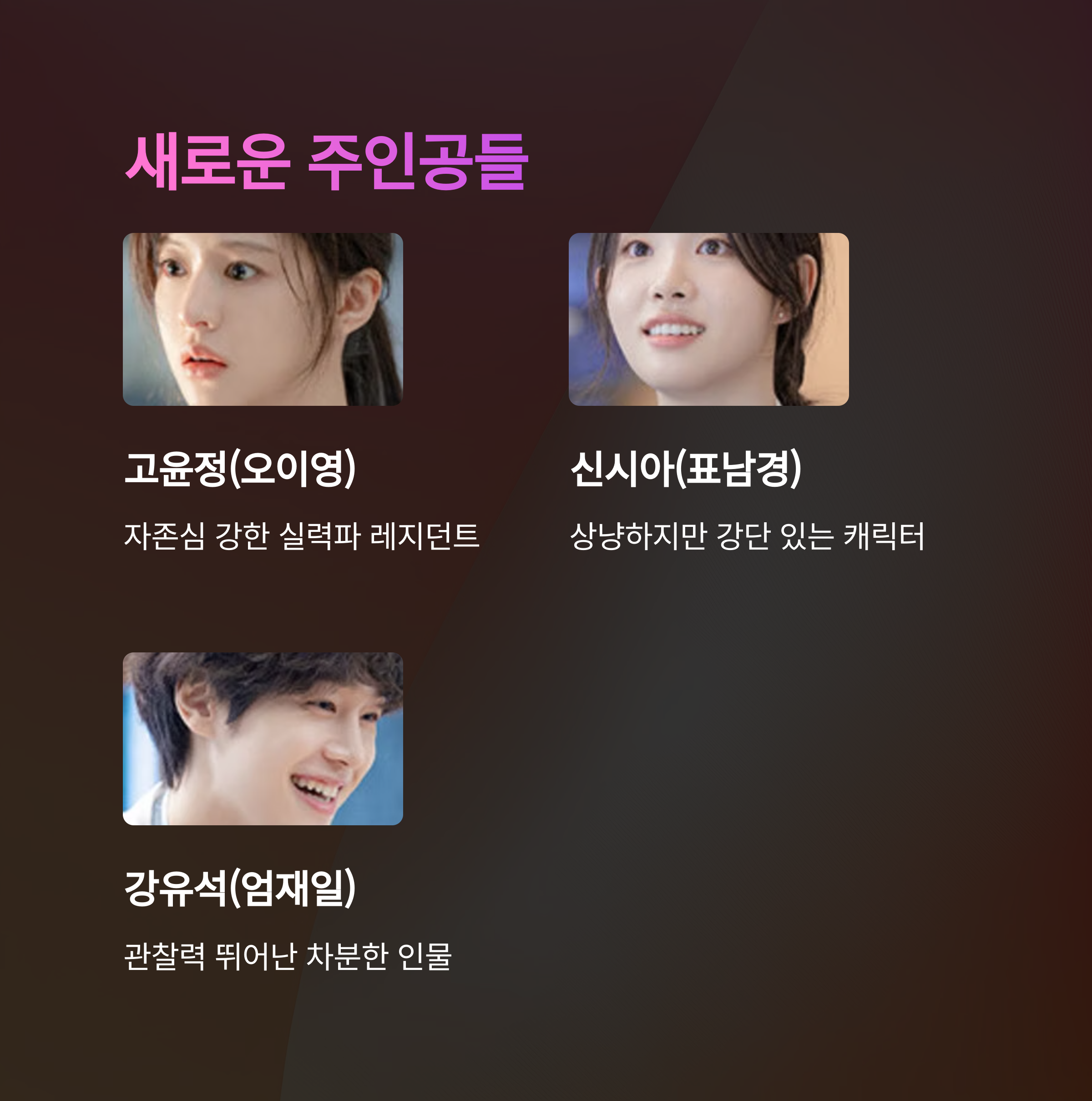 • 강유석(엄재일): 관찰력 뛰어난 차분한 인물