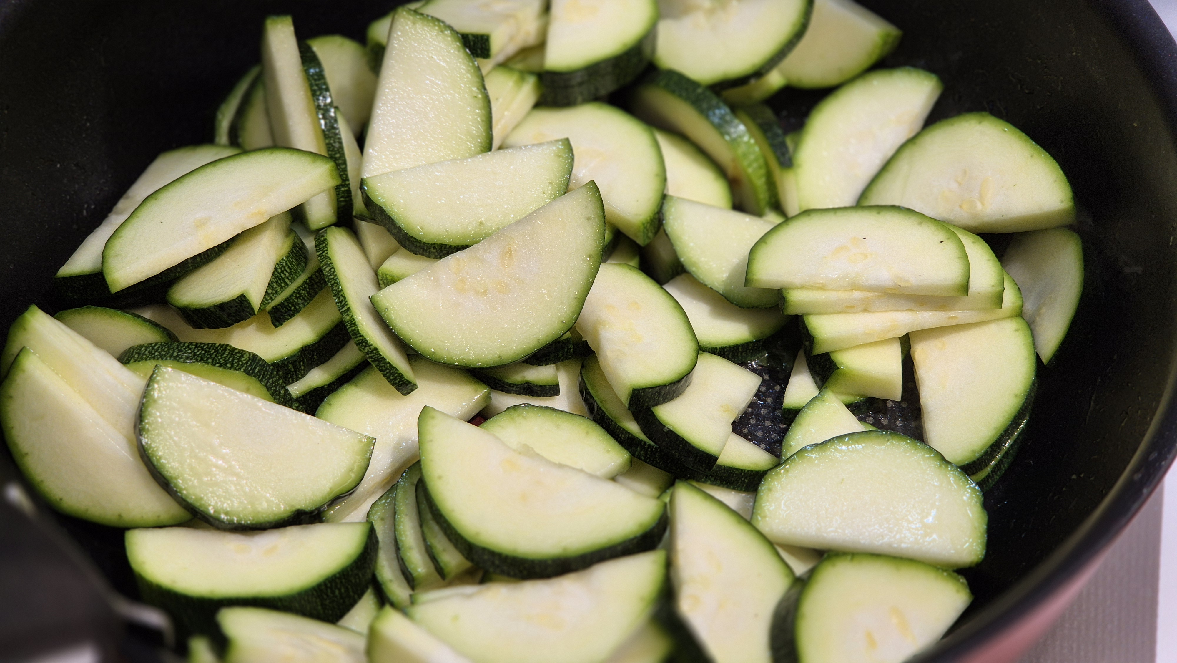 - 주키니를 넣고 센 불에서 2~3분간 볶는다.