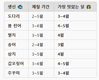 봄철 대표적인 제철 생선과 가장 맛있는 시기