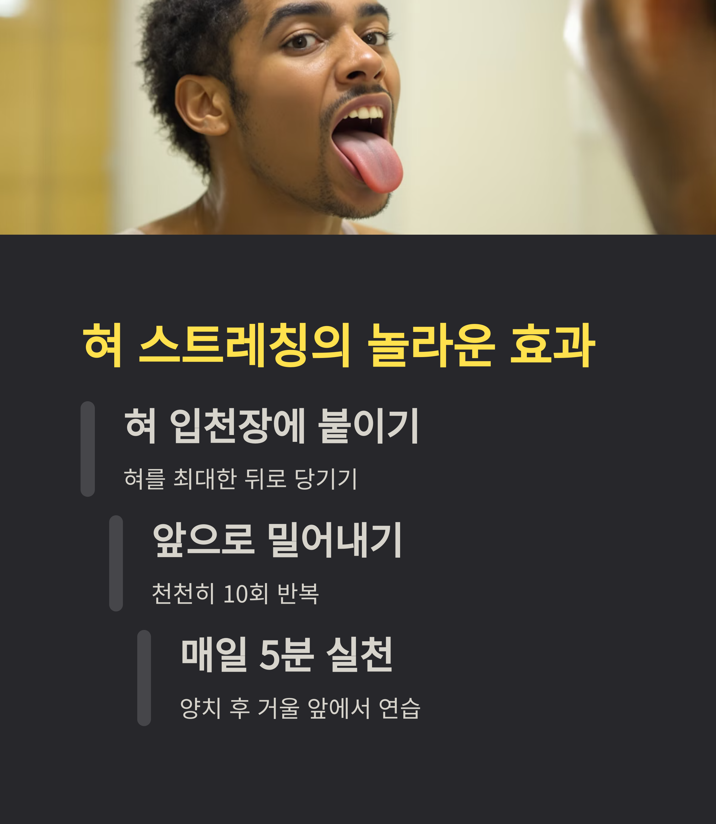 ✔ 양치 후 거울 앞 혀 스트레칭 2분