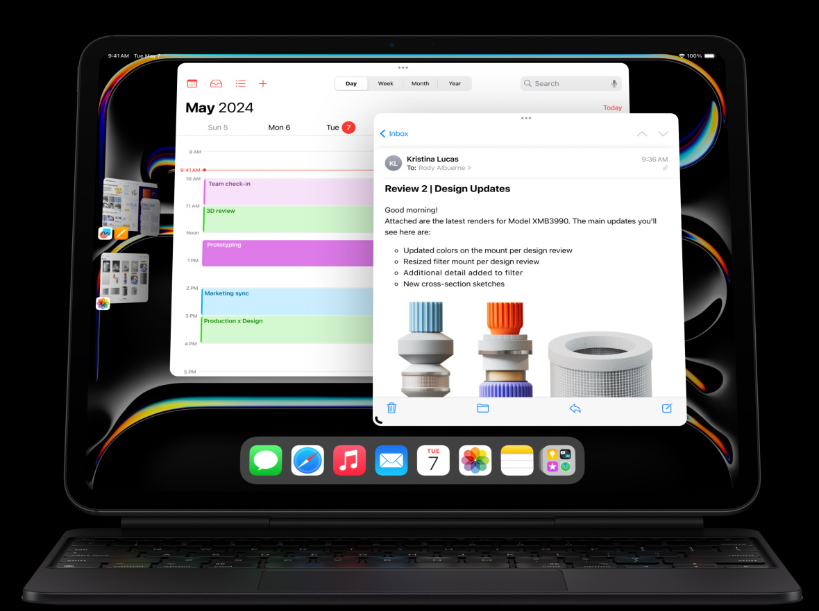 Apple이 2024년 5월 7일 Apple 이벤트에서 공개한 iPadOS 태블릿 컴퓨터.